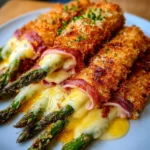 Asparagus Cordon Bleu combines tender asparagus wrapped in savory ham and gooey Gouda, all encased in a crispy breadcrumb coating for a delightful feast.