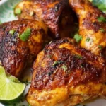 - Rest the chicken for 10 minutes before serving, garnished with lime wedges and chopped cilantro.