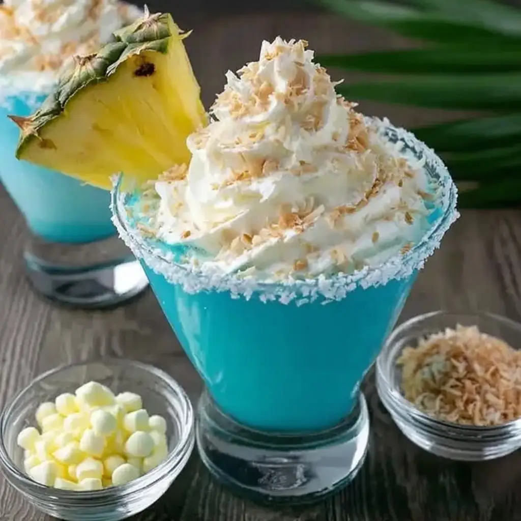 At first glance, the cocktail’s bold blue hue sets the tone. The color comes from blue curaçao, a citrus-flavored liqueur known for its bright tropical color and subtle orange flavor. When combined with coconut rum, pineapple juice, and coconut cream, the result is a silky, tropical drink that tastes like a vacation in a glass. It’s smooth, sweet, slightly tangy, and incredibly refreshing.