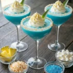 At first glance, the cocktail’s bold blue hue sets the tone. The color comes from blue curaçao, a citrus-flavored liqueur known for its bright tropical color and subtle orange flavor. When combined with coconut rum, pineapple juice, and coconut cream, the result is a silky, tropical drink that tastes like a vacation in a glass. It’s smooth, sweet, slightly tangy, and incredibly refreshing.