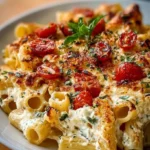 As the warm aroma of baked cheese wafts through your kitchen, the anticipation builds with each moment. You can almost taste the rich creaminess of Boursin cheese mingling with the roasted garlic, while the sweet, blistered cherry tomatoes add a playful burst of flavor. Imagine twirling generous forks of rigatoni pasta tossed in a velvety sauce that clings lovingly to each bite. This is not just a meal; it’s an experience that envelops you in comfort and indulgence.