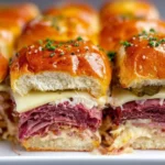The enticing aroma of melted Swiss cheese envelops your senses as you lift the lid from a pan of glistening sliders, their golden tops beckoning with a rich, buttery sheen. Just beyond the surface lies a treasure trove of flavors waiting to burst forth with every bite. A quick glance reveals layers of tender corned beef, tangy sauerkraut, and zesty dressing, all nestled in soft, pillowy Hawaiian rolls—a mouthwatering invitation that’s impossible to resist. As you lean in closer, the unmistakable scent of garlic mingles with the faint sweetness of the rolls, igniting a glorious anticipation.