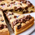 The scent of freshly baked cookie cake drifts through your kitchen like a warm hug, beckoning you closer with promises of crunchy edges and a soft, gooey center. Imagine a thick, luscious slab of cookie, crisped to perfection on the outside while remaining an inviting treasure trove of chocolatey delight within. Each bite unfolds with a melody of sweetness, blending the rich, creamy flavors of buttery goodness with bursts of decadent chocolate that melt in your mouth. As you dive in, the sweet aroma wraps around you, transporting you back to the comforting moments of childhood baking adventures, where all you needed was a plate of cookies and the company of family and friends.
