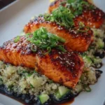 Healthy? Yes, please! Salmon is a fantastic source of omega-3 fatty acids, which are known for their heart-healthy benefits, making this dish not only delicious but also nourishing. It makes for a perfect dish on a casual family night or elegant enough to impress guests at a dinner party. The versatility of presenting it on a bed of fluffy quinoa or nutty brown rice adds a wholesome element that complements the dish beautifully, making this a showcase of flavor and nutrition.