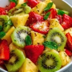 Sinking your teeth into a Fresh Pineapple Kiwi Salad feels like summer bursting forth on your tastebuds. As you plunge your fork into the vibrant medley of succulent pineapple, luscious kiwi, and juicy strawberries, the crisp freshness dances in your mouth with each bite. The tangy citrus notes from the lime harmonize beautifully with the fragrant sweetness of honey, all wrapped in the cool embrace of fresh mint leaves. Your senses awaken to the zesty aroma, inviting you to dive deeper into this exotic fruit affair—an experience that feels more like a mini-vacation than a simple salad.