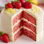 A delightful strawberry cake layered with a zesty lemon frosting, perfect for any celebration.