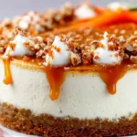 Cutting into this cake reveals a swirl of colors, with the golden-orange carrot cake contrasting against the ivory cheesecake layer, creating a visual feast for the eyes. The first forkful brings an explosion of flavors: the warm spices tickle your senses, while the silky creaminess of the cheesecake melts effortlessly in your mouth. A drizzle of caramel adds an alluring sweetness that lingers, while the subtle crunch from the nuts elevates each bite. This is not just a dessert; it’s an experience that warms your heart and brings smiles to those you share it with.