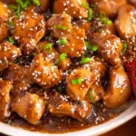 7. Garnish & Serve: Let the chicken rest for 5-7 minutes as the sauce continues to thicken. Serve over hot rice, garnished with fresh green onions and a sprinkle of sesame seeds.