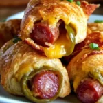 A crowd-pleaser appetizer combining spicy jalapenos, creamy cheese, and smoky sausage wrapped in flaky crescent dough.