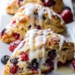 Delicious and flaky scones bursting with vibrant mixed berries, perfect for breakfast, brunch, or a delightful snack.