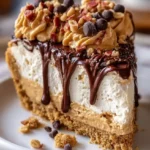 Garnish and serve: Before serving, top your beautifully set pie with 1/2 cup of chocolate chips and a sprinkle of chopped peanuts if desired. Enjoy the beautifully crafted layers of flavor and texture!