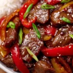 A delightful copycat recipe recreating the vibrant flavors of Panda Express’s Beijing Beef, featuring crispy flank steak, bell peppers, and a rich hoisin sauce.