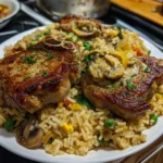 A hearty and flavorful casserole featuring tender pork chops and savory rice, perfect for a comforting dinner.
