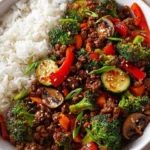 Whether you’re whipping it up on a weeknight or impressing friends at a casual dinner party, the Spicy Ground Beef Stir-Fry Bowl with Garlic Veggies guarantees to turn any meal into an exciting culinary adventure.