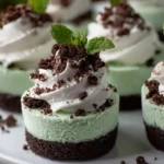 Delightful mint cheesecake cups with a chocolate cookie crumb crust, perfect for St. Patrick’s Day celebrations.